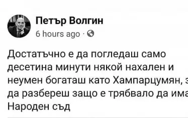 От поста на Манол Пейков се разбира още, че делото на 102-годишната жена срещу Волгин е насрочено в Софийския районен съд за 25 октомври.