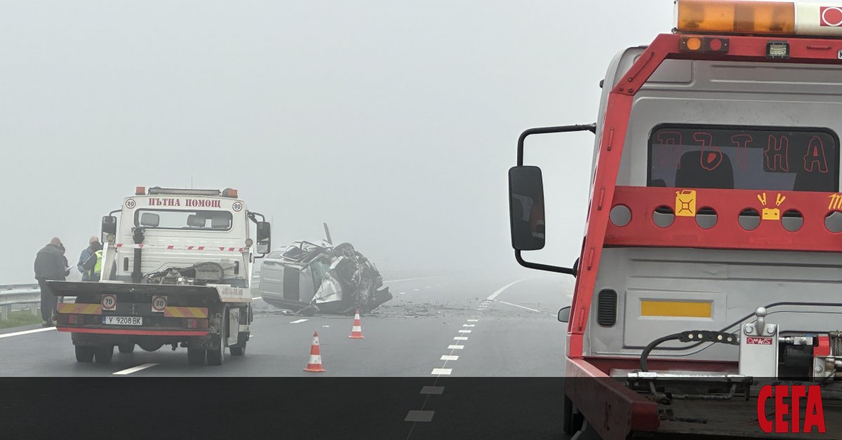 Сигналът за верижното пътнотранспортно произшествие в отсечката на 110-112-и км е получен към 19:00 часа, пише БТА. По предварителни данни няма пострадали хора. Три от автомобилите се намират в аварийната лента, а един - в активната. До изтеглянето им движението е ограничено.