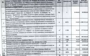Доста скъпи според ценовата оферта са и информационните табели. За една информационна табела, размер 80 на 60 см. предложената цена от изпълнителя е 1491 лв. или за 22 табели - 32 813 лв. За сравнение направата и монтажа на едно дървено мостче с размер 4 метра на 1,8 м. ще струва близо три пъти по-малко - 460 лв. на бройка.
