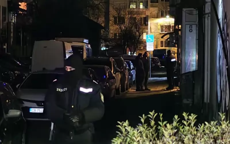 Униформените се опитват да задържат престъпнците, без да създадат опасност за живеещите в блока.