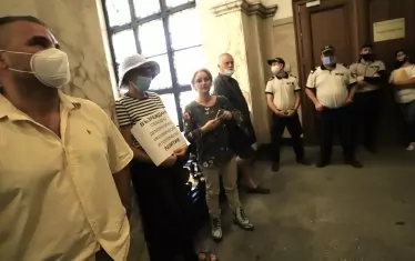 Зрелищен екшън се вихри в момента пред кабинета на главния прокурор Иван Гешев в Съдебната палата. Активисти на партия "Възраждане" са там, за да връчат собствената му оставка и той да я разпише. Освен това носят и сигнал "до главния прокурор заради нарушения на главния прокурор", който смятат да входират по надлежния ред. Гешев обаче го няма, а активистите смятат да стоят докато се появи. Днес по обед главният прокурор участва на заседание на Апелативна прокуратура - София. По принцип е в отпуск, но официалните обяснения гласят, че работи през този период, при това ударно и качествено. Един от активистите заяви, че под вратата на кабинета са се появили сенки, но така и никой не я отворил отвътре. След появата на хората и звънецът бил изключен.