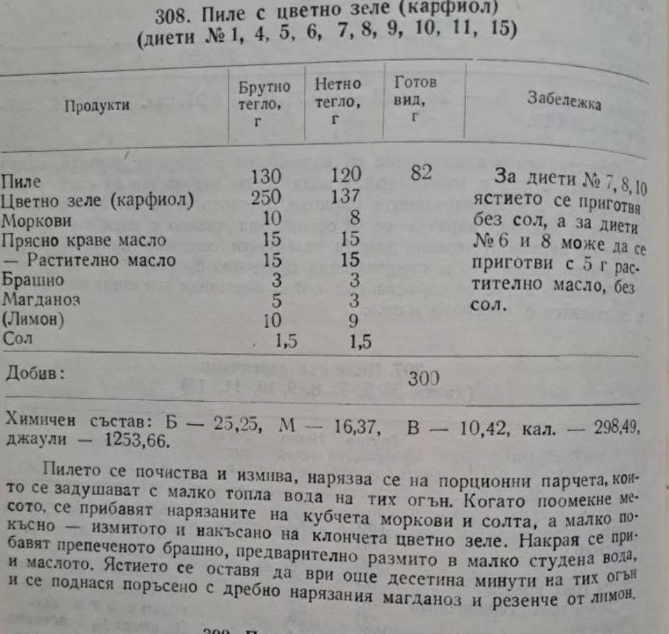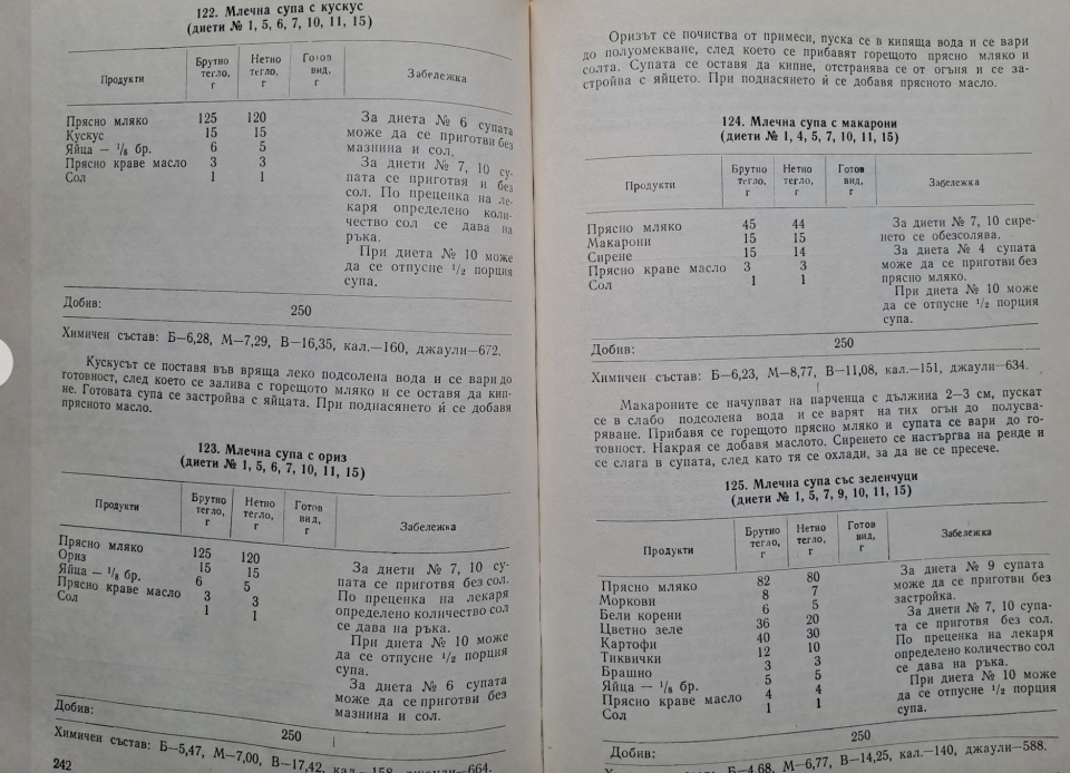 Сборникът с диетични рецепти може да се открие в антикварните сайтове. Ето някои извадки от него:
