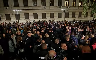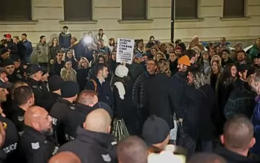 "Аз не съм си купил билет, но съм тук, за да покажа, че фундаментът на една нормална държава е да не се допуска нахлуване в театъра", заяви Кирил Петков пред журналисти. "Виждаме, че фундаментът на демокрацията се клати и ние сме тук, за да я защитим."