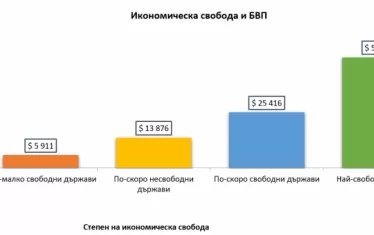 - Държавите с по-висока икономическа свобода имат чувствително по-голям брутен вътрешен продукт на човек от населението;