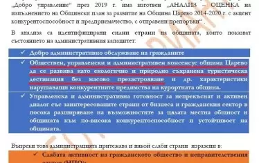 За съжаление много рядко плановете за развитие на общините изпълняват своето предназначение, а именно – да са основополагащият документ, пътната карта, върху която съответната Община очертава и в последствие реализира приоритетите си. Планът за развитие на Община Царево е изпълнен с красиви, но кухи заключения. Не формулира основните проблеми и не намира техните решения. Но, от анонимни автори – толкова.