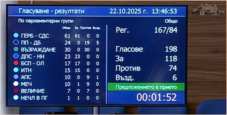 В обсъждането на важния законопроект участваха малко депутати, а залата бе полупразна. В крайна сметка управляващата коалиция - ГЕРБ, БСП, ИТН плюс ДПС-НН на Пеевски, осигуриха достатъчно гласове за приемане на "недоносчето" на първо четене.