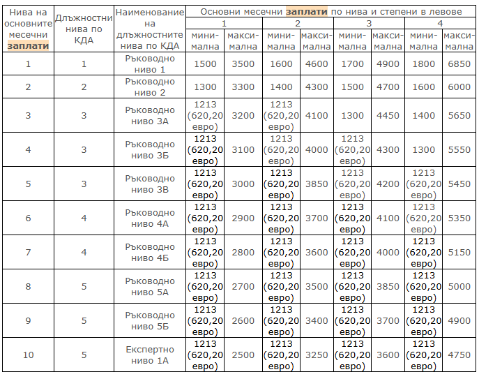 Кабинетът на Росен Желязков е пропуснал да превалутира минималните и максималните размери на заплатите на служителите във всички администрации. Единствените суми е таблицата, дадени в евро, са праговете, които съвпадат с минималната работна заплата, установи “Сега”.