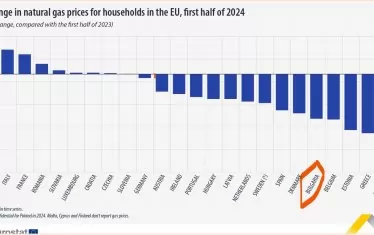 И цените на природния газ за домакинствата у нас са били сред най-достъпните в целия Европейски съюз през първото полугодие. По-евтино синьо гориво са ползвали само в Унгария, Хърватия, Словакия и Румъния.