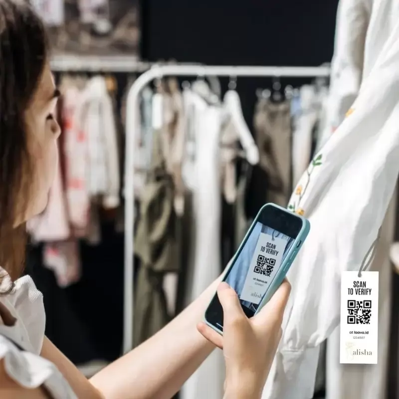 Чрез QR кода крайните клиенти четат подробности за състава на дрехата, указания за пране и поддръжка, както и информация за устойчивото ѝ производство.