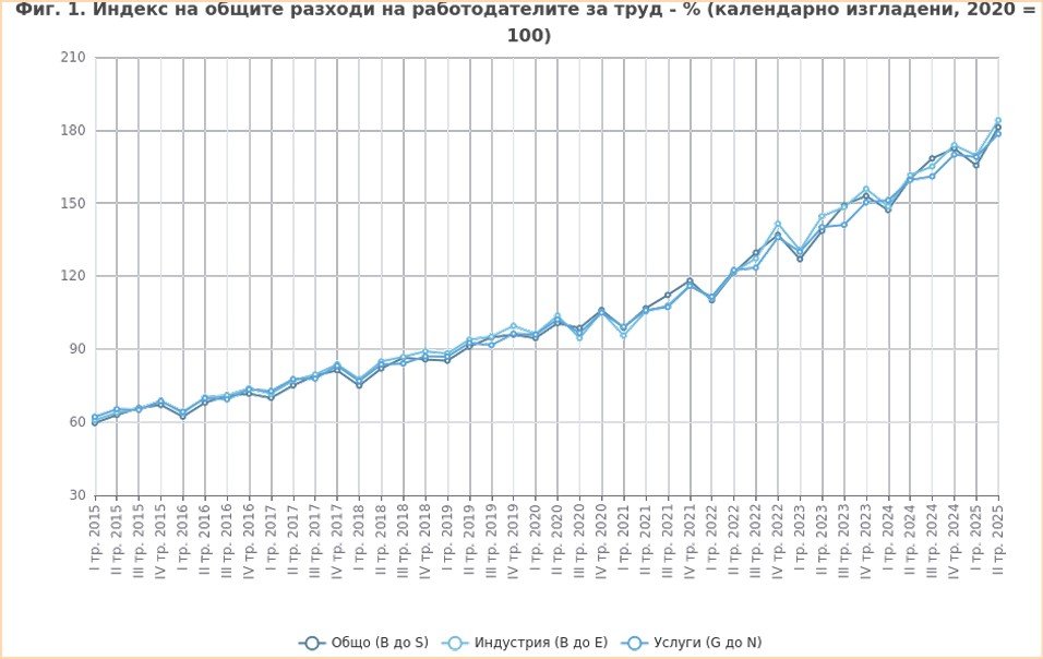 Само за година разходите за труд* са се увеличили средно с 13 процента, показват новите данни на НСИ - за третото тримесечие на 2025 г. При скромен ръст на икономиката - под 4%, и при около 5% инфлация на годишна база двуцифреното покачване на заплатите не изглежда нито оправдано, нито здравословно, защото всъщност по-високите доходи са почва за избуяване на цените.