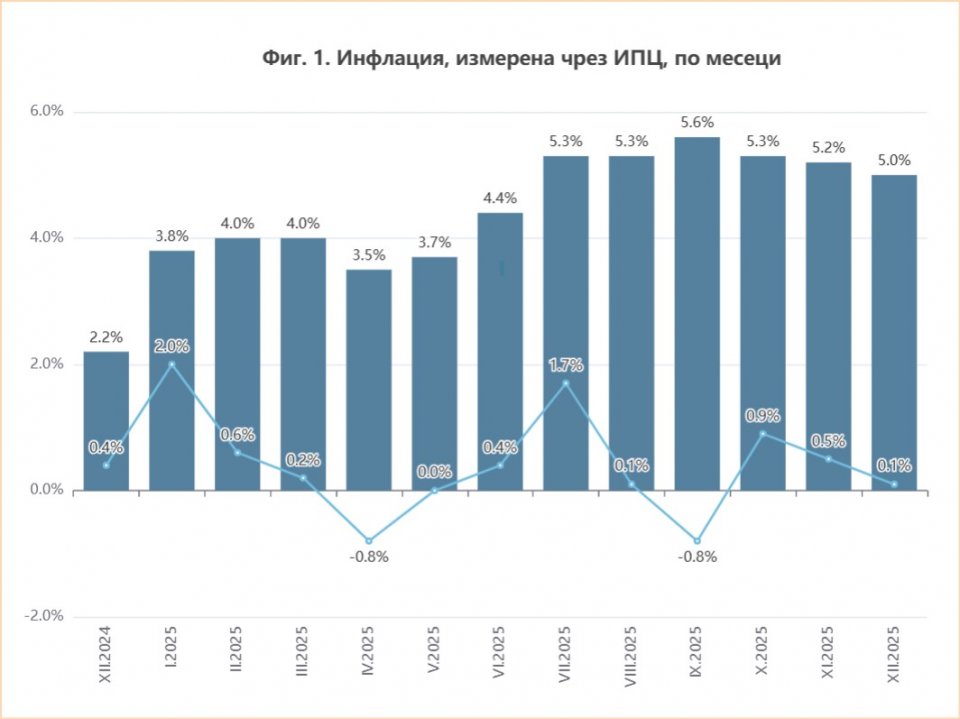 През наситения с празници декември 25-а и в очакване на еврото инфлацията е била символична - 0.1 на сто, съобщават още от НСИ.