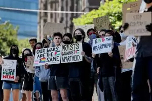 Протестиращите разпънаха палатков лагер и поискаха да се прекрати акционерното участие на университета в Boeing, „който произвежда боеприпаси, използвани в продължаващия геноцид над палестинския народ в Газа, в близкия завод в Сейнт Чарлз“.