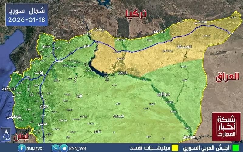 Ситуацията в Сирия се промени драстично в началото на 2026 г. SDF се съгласиха да се интегрират в държавните институции на новата власт в Сирия. Лидерът на SDF Мазлум Абди обяви изтегляне на силите на изток от река Ефрат, предавайки контрола над важни градове като Деир Хафир на новата сирийска армия.