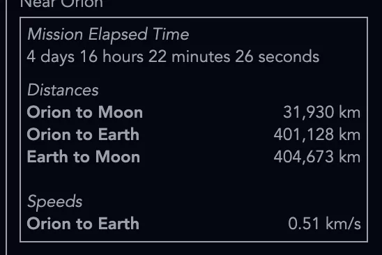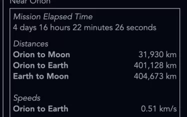 Днес мисията Artemis II (Артемида 2) постави нов световен рекорд, защото преминава по хибридна траектория за свободно завръщане - корабът ще прелети на около 7400 км зад обратната страна на Луната, докато преди 56 г. "Аполо" лети на 100 км над Луната. Тази позиция, съчетана с текущата позиция на Луната, позволява на екипажа да надмине рекорда на Apollo 13 с около 2100 – 2500 км.