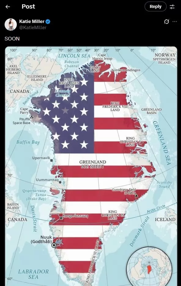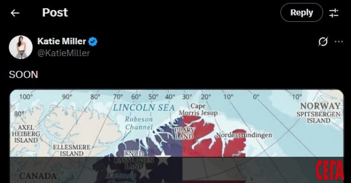 Ден по-рано съпругата на Милър - Кати, публикува карта на Гренландия, оцветена с американското знаме и надпис: "Скоро". Това предизвика реакция както на властите в Дания и Гренландия, така и на европейски политици като президента на Франция Макрон.