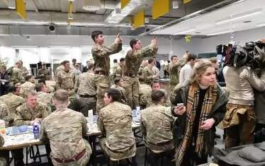 Джонсън раздаде обяд, а след това и обядва с военните, а после произнесе реч, в която нарече армията на Обединеното кралство "най-яркия символ" на това, че Великобритания остава обвързана към сигурността и стабилността на Европа след Брекзит.