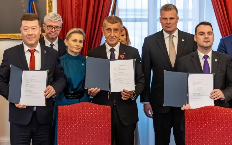 Ден по-рано бе подписано коалиционно споразумение между победителя на изборите - партията на милиардера и бивш чешки премиер Андрей Бабиш „Действие на недоволните граждани“, СПД на Окамура и дясната партия „Автомобилистите“. Съгласно коалиционната сделка третото по важност държавно място е за лидера на крайната десница. Трите партии имат 108 места в 200-членния чешки парламент.