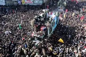 Телата на загиналите бяха докарани в Кадимия, натоварени в задната част на пикапи. Ковчезите бяха обвити в националните флагове на загиналите. Конвоят си проправи път през море от опечалени, някои от които носеха портрети на върховния лидер на Иран Аятолах Али Хаменей.
