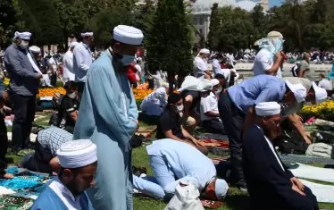 Молитвата се води от главата на Дирекцията по религиозните дела Али Ербаш. Вътре в храма са допуснати 500 души. Валията на Истанбул Али Йерликая заяви по-рано, че за желаещите ще бъдат обособени 5 зони на открито - 3 за мъже и 2 за жени.