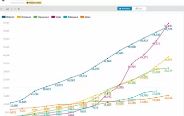 Междувременно, след като регистрира над 10000 нови случаи на коронавирус за ден, САЩ изпревариха Италия и се превърнаха в страната с най-много активни случаи в света. В момента в САЩ има 68 572 активни случая срещу 57521 в Италия, която все още води по общ брой заразени (74 386). В Италия вече има 7503 починали, в Испания - 4089 починали и така двете страни изпревариха Китай в черната класация за брой на жертвите от вируса. Броят на смъртните случаи от коронавируса в САЩ нарасна от 827 до 1032 души през последното денонощие.