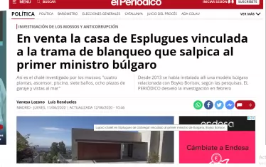 Това е луксозната къща в квартал Esplugues de Llobregat, която полицията в Каталуня Mossos d´Esquadra и специализираното звено за борба с корупцията към испанската прокуратура разследват от миналата година заради съмнения за международна схема за пране на пари, свързана с премиера на България Бойко Борисов, припомня "Ел Периодико", който първо съобщи за проверката през февруари.