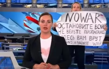 "Чувствам се уморена и измъчена. Синът ми ми каза, че съм провалила живота на нашето семейство, но аз му отвърнах, че понякога е нужно да се действа безразсъдно, за да може животът ни да се подобри", казва Марина Овсяникова в интервю за "Новая газета" . Тя стана световно известна миналия понеделник, когато се появи в централната емисия "Время" с антивоенен плакат зад гърба на водещата. Протестът ѝ трая 10 секунди, преди да сменят кадъра, а тя бе арестувана. Засега ѝ е наложено само административно наказание да плати глоба от 250 евро. Все още не знае дали ще има и наказателно дело по закона, който забранява да се споменава думата "война".