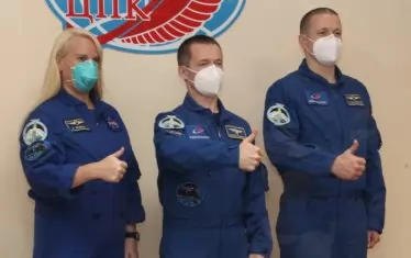 Командирът на екипажа Сергей Рижиков докладва за отличното здравословно състояние на екипа. Руските космонавти Сергей Рижиков, Сергей Куд-Сверчов и американката Катлийн Рубенс се завърнаха в космическия кораб след шестмесечен вахта в Международната космическа станция. След заминаването им, седем души останаха на МКС, включително двама руснаци.