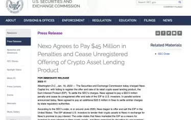 Компанията Nexo се е съгласила да плати 45 млн.долара на американските регулаторни органи и ще прекрати нерегистрираното предлагане на крипто продукти. Това съобщи Комисията за ценни книжа и борси на САЩ, която обвини Nexo, че е нарушила правилата, предлагайки продукт за крипто кредитиране, цитирана от БНТ.