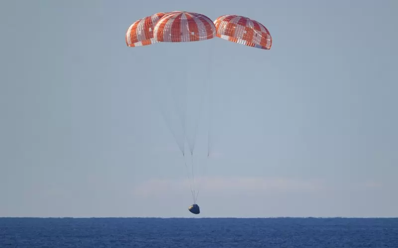 Капсулата "Орион" на мисията Artemis II, която обиколи Луната с четирима астронавти, се завърна на Земята тази нощ. Това беше най-критичната част от мисията, която продължи десет дни. "Орион" навлезе в атмосферата със скорост от 40 000 км в час, която накрая - при удара с водата - падна до 32 км в час.