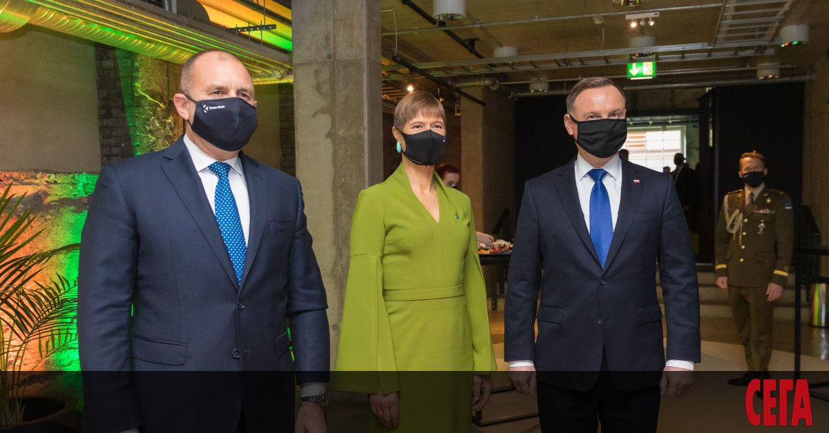 Анджей Дуда (вдясно), който днес даде положителен тест за COVID-19, е сниман на 19 октомври заедно с президента на България Румен Радев и на Естония - Керсти Калюлайд, по време на форума "Три морета" в Талин.
