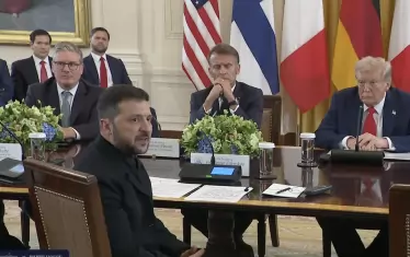 Президентът на Украйна Володимир Зеленски пристигна в Белия дом със секретаря на СНБО Рустем Умеров, с посаника на Украйна в САЩ Оксана Макарова, шефа на канцеларията си Андрей Ермак, зам.министър Кислица. Тръмп го посреща заедно с вицепрезидента Джей Ди Ванс, държавния секретар Марко Рубио и специалните си пратеници Стив Уиткоф и Кийт Келог.