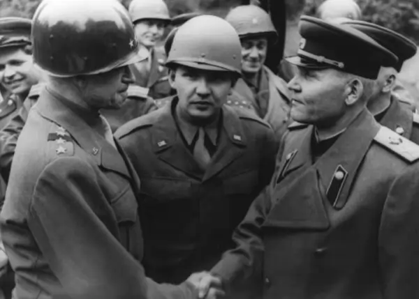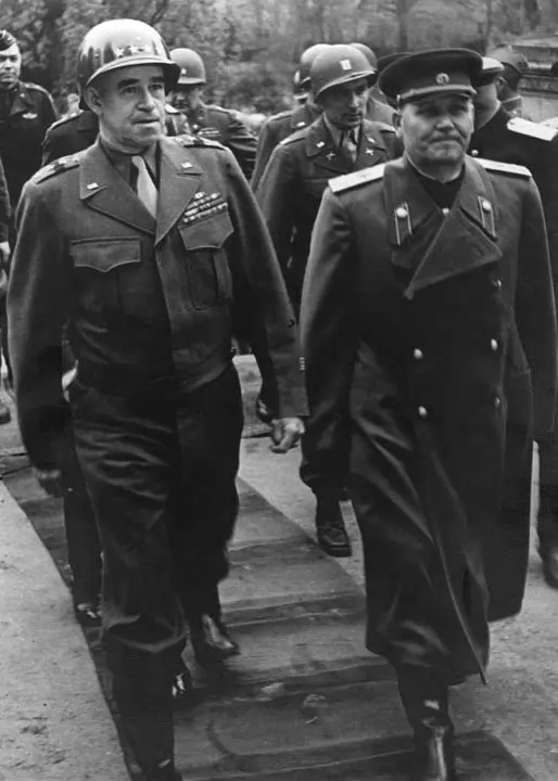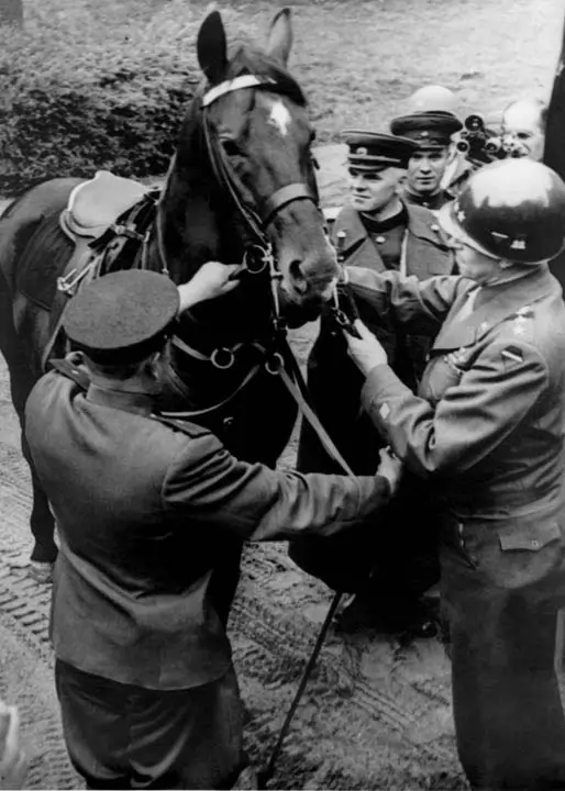 Руското Министерство на отбраната пусна непоказвани досега снимки от срещата на американските и съветските войски на 25 април 1945 г. край град Торгау на река Елба в Германия. Тогава се срещат войските на Първи украински фронт и Първа армия на САЩ, ръководени съответно от маршал Иван Конев и ген. Омар Брадли. На снимките се виждат няколко срещимежду двамата военоначалници. На една от фотографиите се вижда как ген. Брадли подарява боен кон на маршал Конев, на втора - съветският военен получава американски орден, на трета той вдига тост.