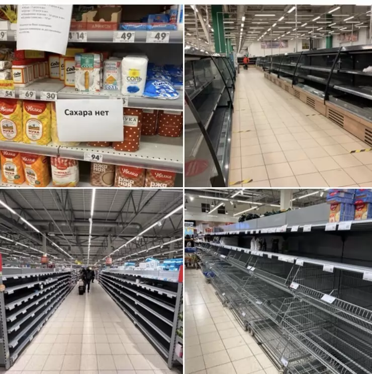 В много от магазините вече има и ведостиг на стоки. Една от най-големите хипермаркети - "Магнит", обяви, че увеличава собственото производство на захар, за да задоволи търсенето, което е скочило 24 пъти за седмица. Прокуратурата пък започна проверка на поскъпването и дефицитите.