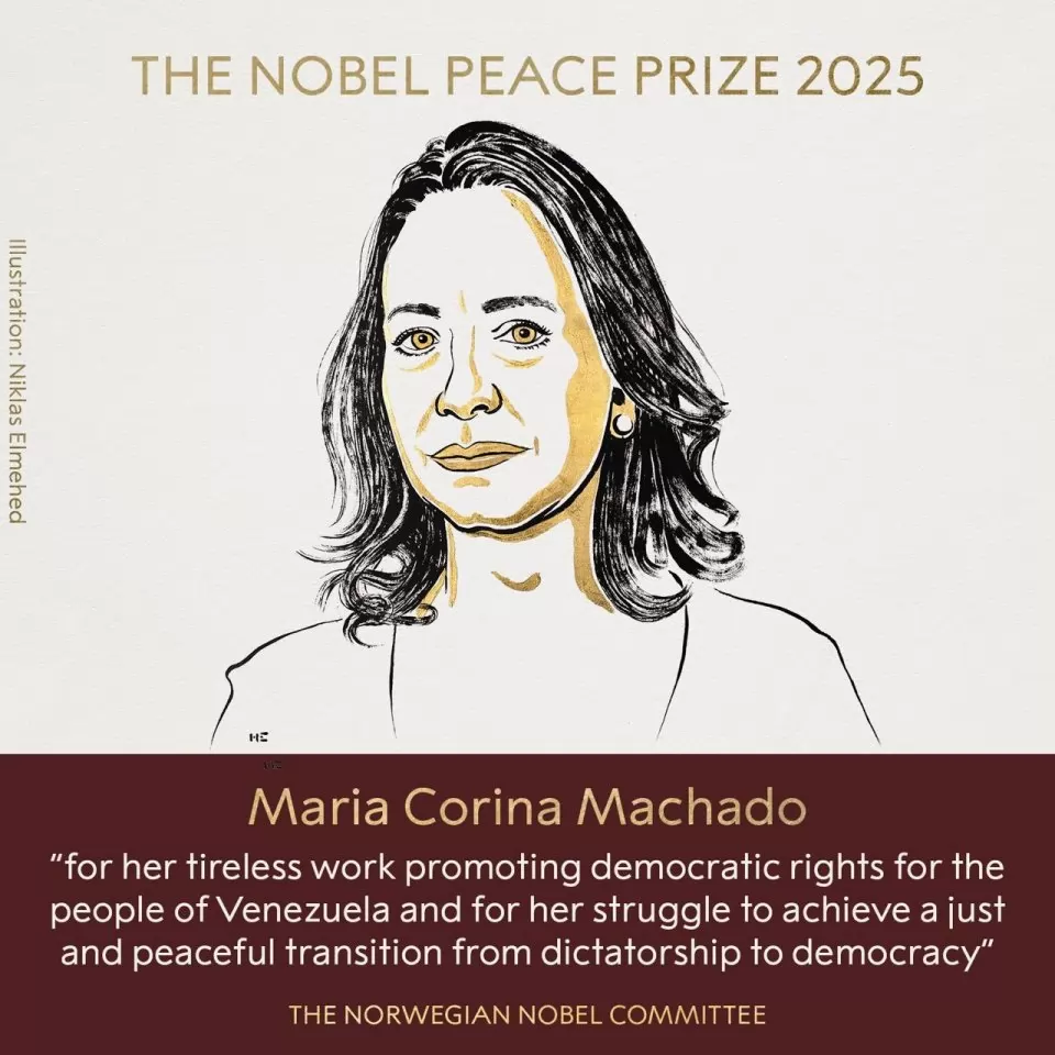 The Nobel Peace Prize was awarded to María Corina Machado from Venezuela. pic.twitter.com/lqip9d3Z6z