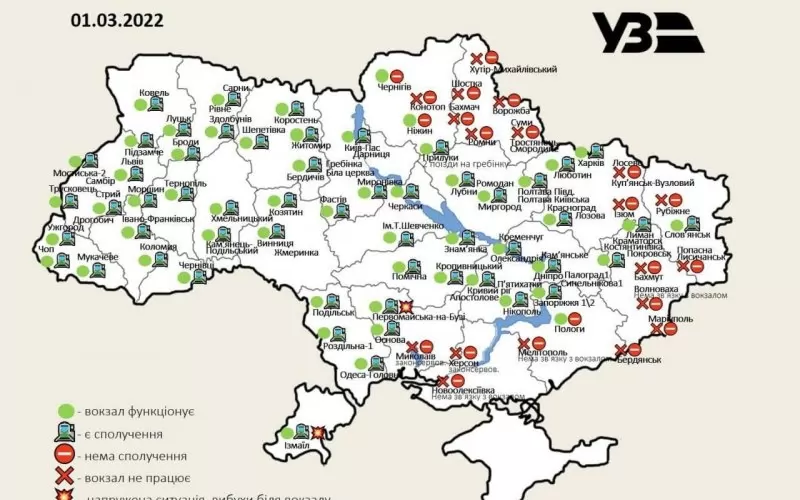 1/3-а от жп линиите в Украйна не функционират в момента (виж снимката)