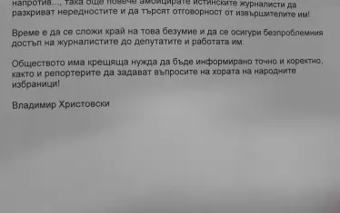 „Мислите, че по този начин ще ни запушите устата и ще закриете очите ни, напротив ... така още повече амбицирате истинските журналисти да разкриват нередностите и да търсят отговорност от извършителите им!“, допълва се в текста.