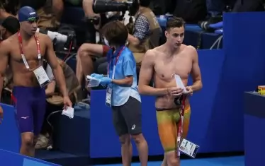 18-годишният дебютант на най-големия спортен форум финишира втори в своя 1/2-финал тази сутрин с резултат 51,06 сек., отстъпвайки единствено на олимпийския шампион на 200 м бътерфлай Кристоф Милак (Унг) - 50,31 сек.