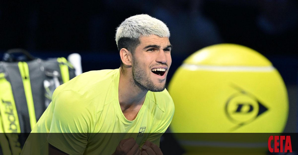 22-годишният Алкарас си гарантира първото място с трета поредна победа в груповата фаза на заключителния турнир на осемте най-добри през годината - Финалите на АТР в Торино. Карлитос се наложи с 6:4, 6:1 над представителя на домакините от Италия Лоренцо Музети и приключи убедително на първа позиция в група "Джими Конърс".