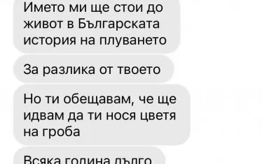 Президентът на Българската федерация по плувни спортове (БФПС) Георги Аврамчев подаде сигнал до градския прокурор на София Илиана Кирилова във връзка с поредица от текстови съобщения, съдържащи открити закани и заплахи от страна на Антъни Иванов.