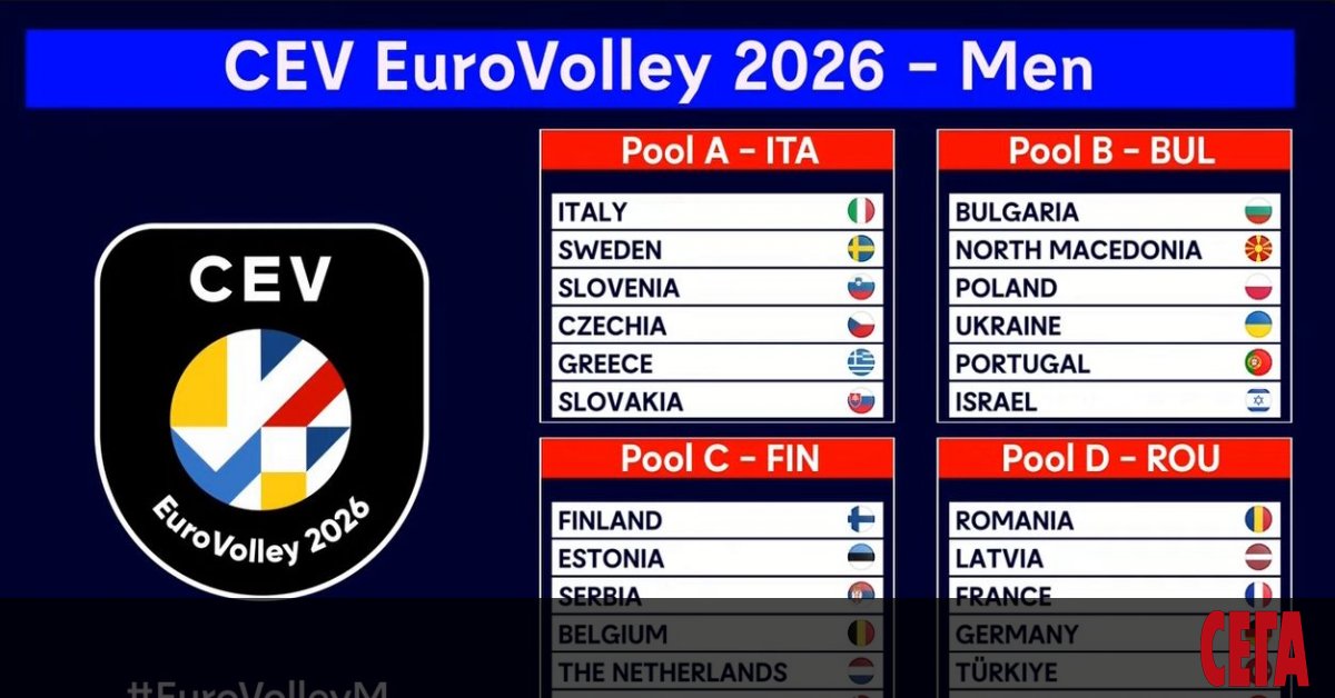 Ето и пълния жребий за груповата фаза на Евроволей 2026 при мъжете: