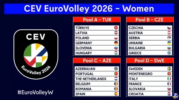 Също тази вечер беше изтеглен и жребият за Евроволей 2026 при жените. Дамският турнир също ще се проведе в четири страни - Турция, Чехия, Швеция и Азербайджан, от 21 август до 6 септември.