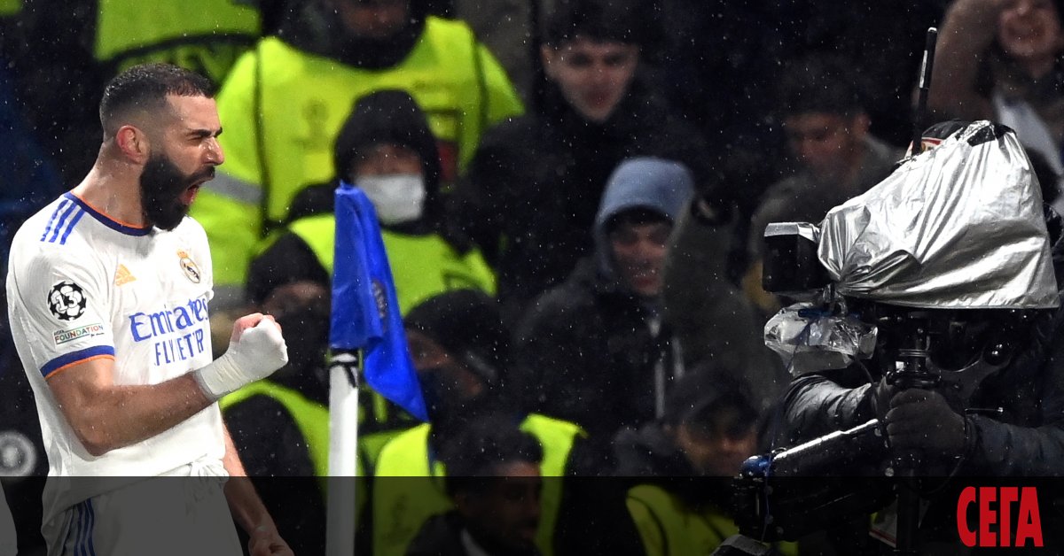 Нов паметен мач на Карим Бензема за "Реал" в Шампионската лига (ШЛ) осигури победа на "Кралския клуб" с 3:1 като гост срещу настоящия носител на трофея в турнира "Челси" в първи 1/4-финален мач. Френският национал отбеляза и трите гола за тима си и му осигури сериозни шансове за класиране сред най-добрите 4 отбора в тазгодишната надпревара.