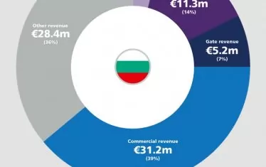 В България най-голяма част от приходите на футболните клубове (39%) идват от търговска дейност - €31,2 млн. На второ място е перото "други приходи" (36%) - €28,4 млн., а на трета позиция са директните постъпления от УЕФА - €11,3 млн. (14%). От продажба на билети за мачовете в касата на отборите ни влизат едва €5,2 млн. (7%), а още по-малко са приходите от ТВ права - €3,1 млн. (4%).