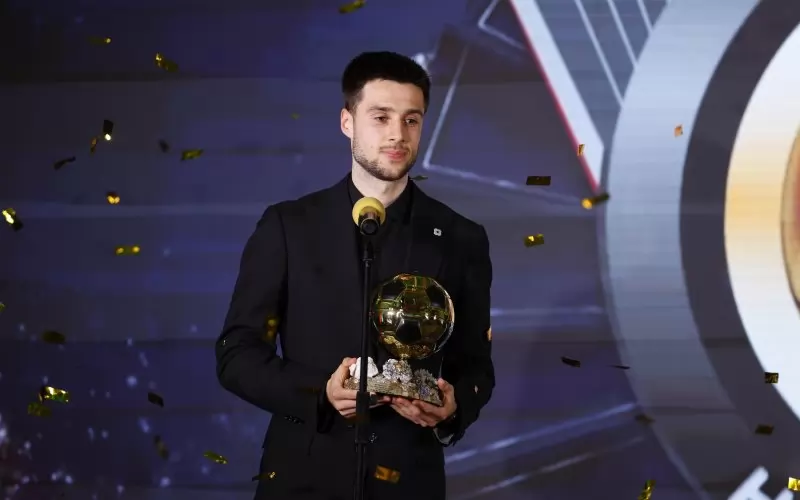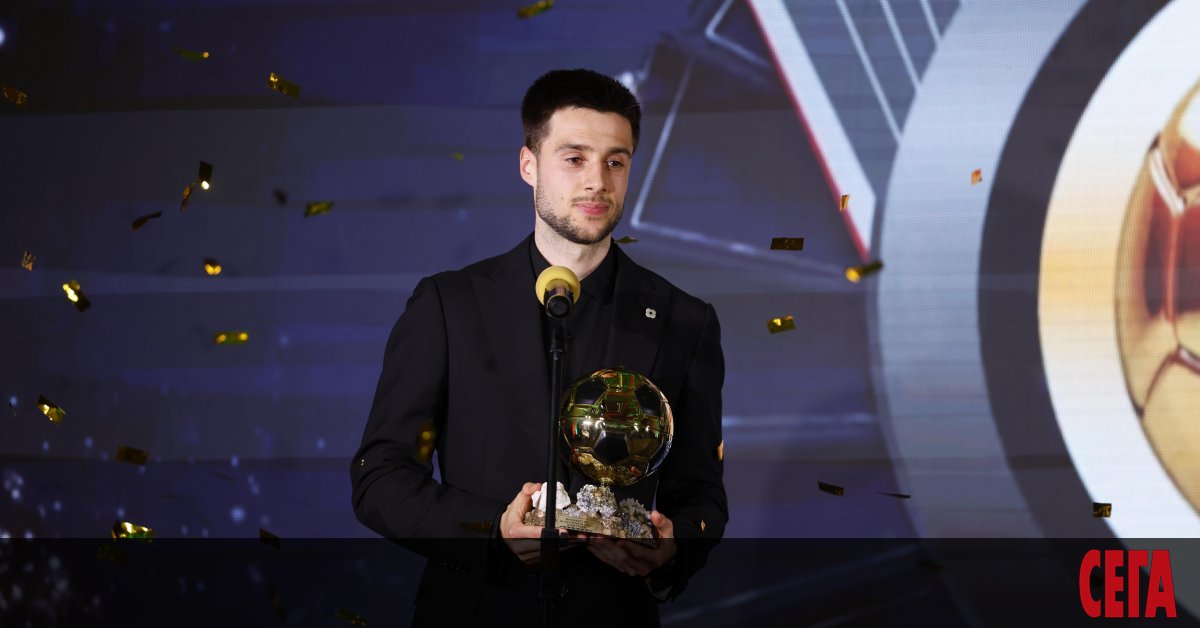 Илия Груев благодари при получаването на наградата си за Футболист №1 на България за 2025 г.