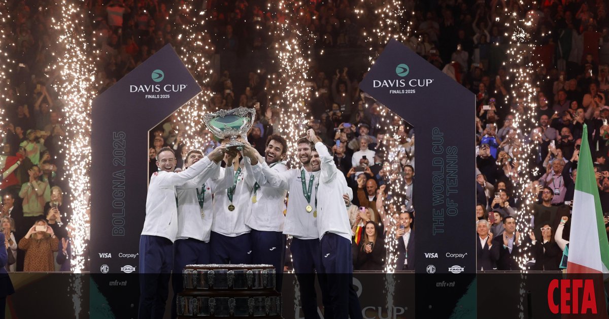 За трета поредна година Италия стана шампион в световно отборно първенство по тенис за мъже - Купа "Дейвис". На родна земя в Болоня "скуадра адзура" триумфира, въпреки че двамата най-добри тенисисти на страната - Яник Синер (№2 в света) и Лоренцо Музети (№8), изобщо не бяха част от тима за Финалната осмица.