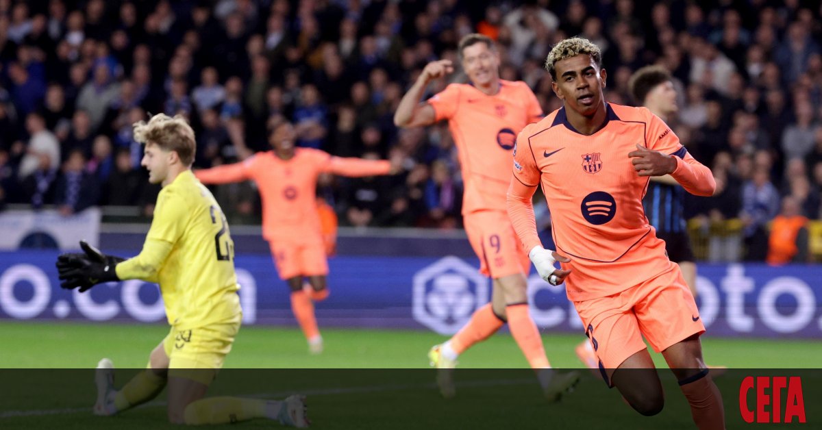 Вечерта се запомни и с нова грешна стъпка на "Барселона", който е на 11-о място в общото класиране със 7 точки, след като завърши 3:3 като гост на "Брюж". Белгийският тим повежда на три пъти с гол на Николо Тресолди в 6-ата минута и две попадения на португалеца Каролш Форбс - в 17-ата и 64-ата. "Барса" успяваше да изравни първо чрез Феран Торес в 8-ата минута, след това чрез Ламин Ямал в 61-ата, а в 78-ата гръцкият национал от домакините Христос Цолис си вкара автогол. Отделно до почивката Фермин Лопес от гостите улучи левия страничен стълб и Жул Кунде - напречната греда, а след това и Ерик Гарсия улучи горната греда на вратата на "Брюж". В крайна сметка "Барселона" можеше да благодари на VAR, че не загуби мача, тъй като в допълнителното време беше отменено попадение на Ромео Вермон след груба грешка на вратаря на гостите Войчех Шчесни.
