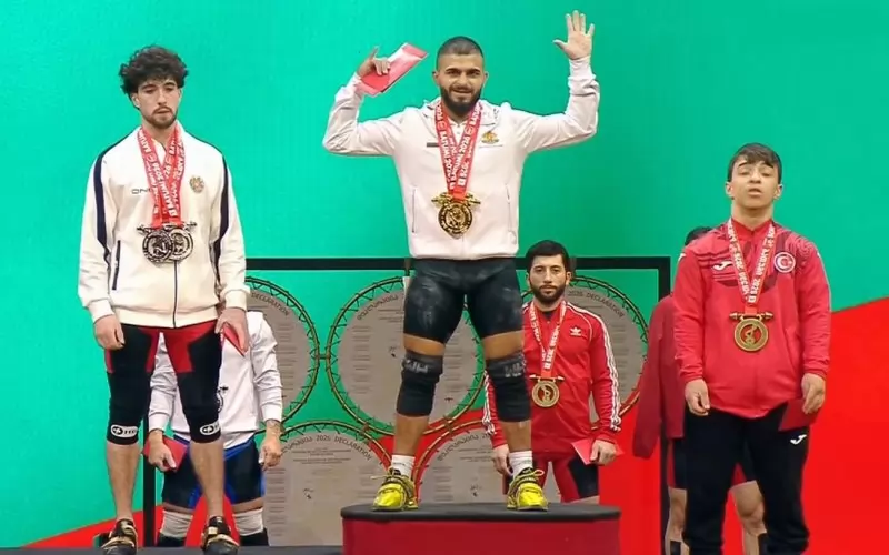 Медал спечели и вторият ни представител в категорията Дениз Данев (на снимката вдясно). Щангистът на "Русе" повтори шестото си място в двубоя от Евро 2025, макар да бе 9-и след изхвърлянето със само един успешен опит от 115 кг.