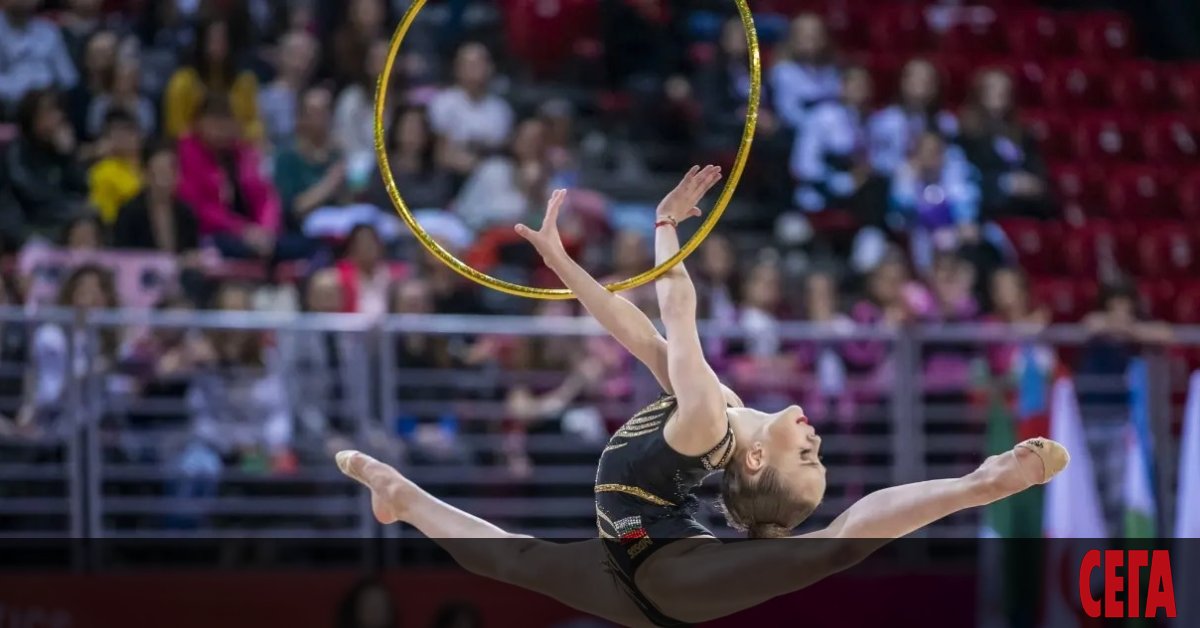 Тя изигра отлично съчетанието си на обръч и получи оценка 34.650 т, като остави след себе си световната шампионка от София 2022 София Рафаели (Ит) - 34.400 т. Бронза заслужи втората българска представителка - Ева Брезалиева (34.550 т), която затвърди доброто впечатление от вчера, когато стана трета и в многобоя.