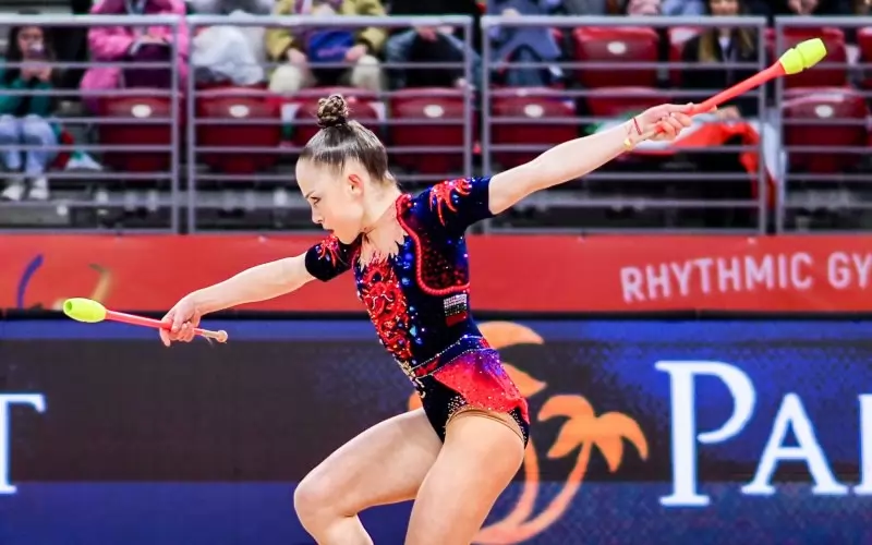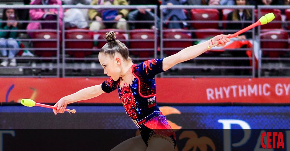 По-късно днес ансамбълът на България ще изиграе второто си съчетание (три обръча и два чифта бухалки), с което ще бъде определено и крайното класиране. Вчера София Иванова, Рая Божилова, Магдалена Вълкова, Магдалина Миневска и Емилия Обретенова поведоха в класирането, след като изиграха отлично композицията си с пет топки и бяха оценени с 27.950 точки.