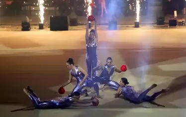В прощалното шоу се включиха също двете ни най-изявени индивидуални грации през последното десетилетие - Невяна Владинова и Катрин Тасева, както и двете момичета, които в отделни моменти бяха част от ансамбъла и спомогнаха за изкачването на олимпийския връх - Елена Бинева и Теодора Александрова.